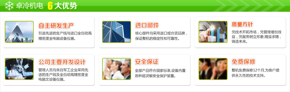 • 深圳市卓冷機(jī)電設(shè)備有限公司是集研發(fā)、設(shè)計、制造、銷售,安裝為一體的綜合性公司,專業(yè)生產(chǎn)冷凍和空調(diào)設(shè)備及安裝。經(jīng)過十三年的發(fā)展,公司從無到有,從小到大,已經(jīng)具備雄厚的制冷技術(shù)、并擁有現(xiàn)代化的生產(chǎn)線和檢測設(shè)備,以生產(chǎn)高質(zhì)量的冷凍空調(diào)設(shè)備和完善的售后服務(wù)贏得了國內(nèi)廣大客戶和經(jīng)銷商的信賴。
